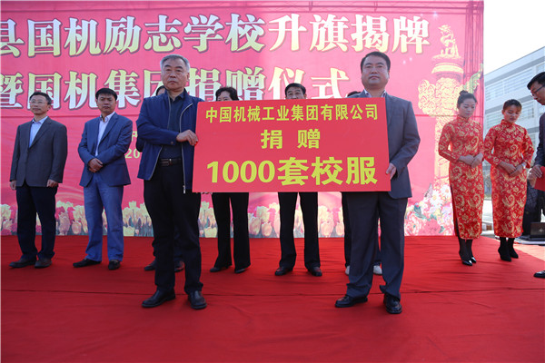 国机励志学校洪念国校长首先介绍了学校的建设情况,并感谢国机集团和中汽国际给予的支持和帮助。捐赠仪式上,国机集团出资70万元,为学校提供上课所需的课桌椅、电子教学仪器及部分电脑等设备。中汽国际代表国机集团为国机励志学校近千名困难家庭的学生捐赠了国机苏美达集团生产的一千套校服,希望能为在校师生创建整洁优美的校园人文环境,树立积极向上的学习态度,为孩子们获取知识、丰富课余文体生活带来更大的快乐与温暖。