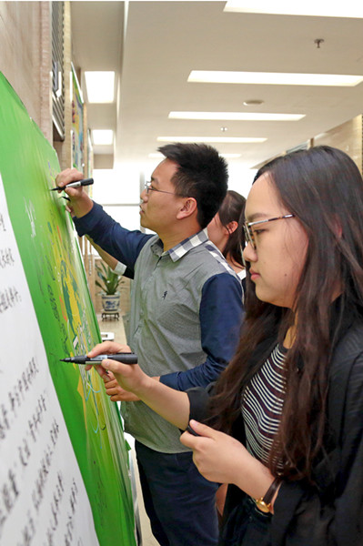 员工们承诺:“在网络中,明辨是非美丑,发出正能声音,抵制谣言邪气,传递文明风尚,营造阳光网络,共筑绿色家园。”