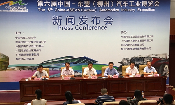 中国—东盟(柳州)汽车工业博览会新闻发布会于8月26日下午召开。中汽国际董事长张福生,副总经理、财务总监陆一舟和柳州市政府副市长李志展、副秘书长姜琦、商务委主任程方晓、市委宣传部副部长吴怀辉等领导出席发布会。共有30余家媒体参加了本次新闻发布会。