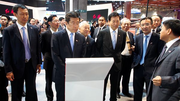 任洪斌董事长一行先后在宾利、玛莎拉蒂等豪车品牌,以及一汽、东风、广汽、上汽、江淮、长安、宇通等中国自主品牌展台驻足停留,详细询问各车企的主打产品、产销趋势以及最新的科技发展成就,与相关企业负责人进行了沟通与互动。