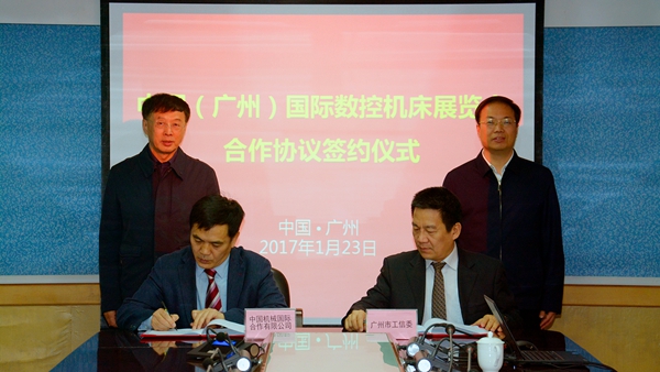 1月23日,中国机械国际合作有限公司(简称中机国际)与广州市政府正式签订首届中国(广州)国际数控机床展览会合作意向书,中机国际董事长张福生,副总经理程永顺和广州市工业和信息化委员会党组书记、主任赵军明,党组副书记、副主任易鸣出席签字仪式。