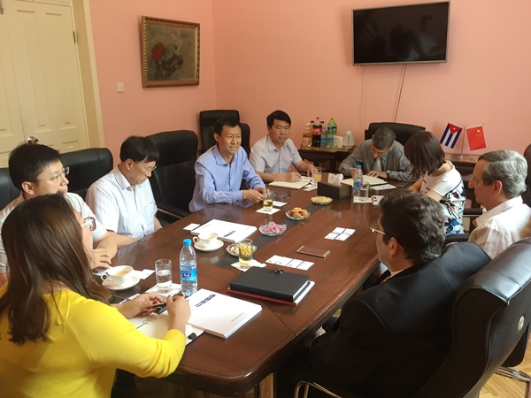 6月16日,中机国际董事长张福生,党委书记、总经理韩晓军,副总经理陆一舟、乔工一行前往古巴共和国驻华大使馆拜会了古巴驻华大使米格尔•安赫尔•拉米雷斯•拉莫斯和经济商务处主任胡安•阿尔贝托•凯利•帕拉斯。