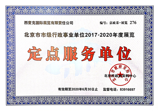 西麦克展览公司成为北京市市级行政事业单位2017-2020年度展览定点服务单位