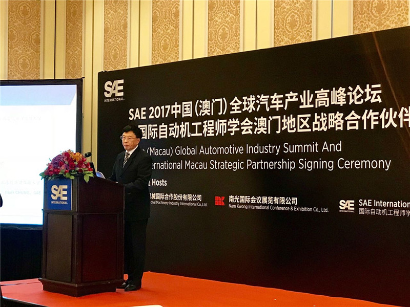 11月3日,在第七届中国(澳门)国际汽车博览会举办期间,公司张福生董事长出席“SAE2017全球汽车展业高峰论坛暨国际自动机工程师学会澳门地区战略合作伙伴签约仪式”。活动由中机国际、南光国际会议展览有限公司、SAE国际自动机工程师学会主办。