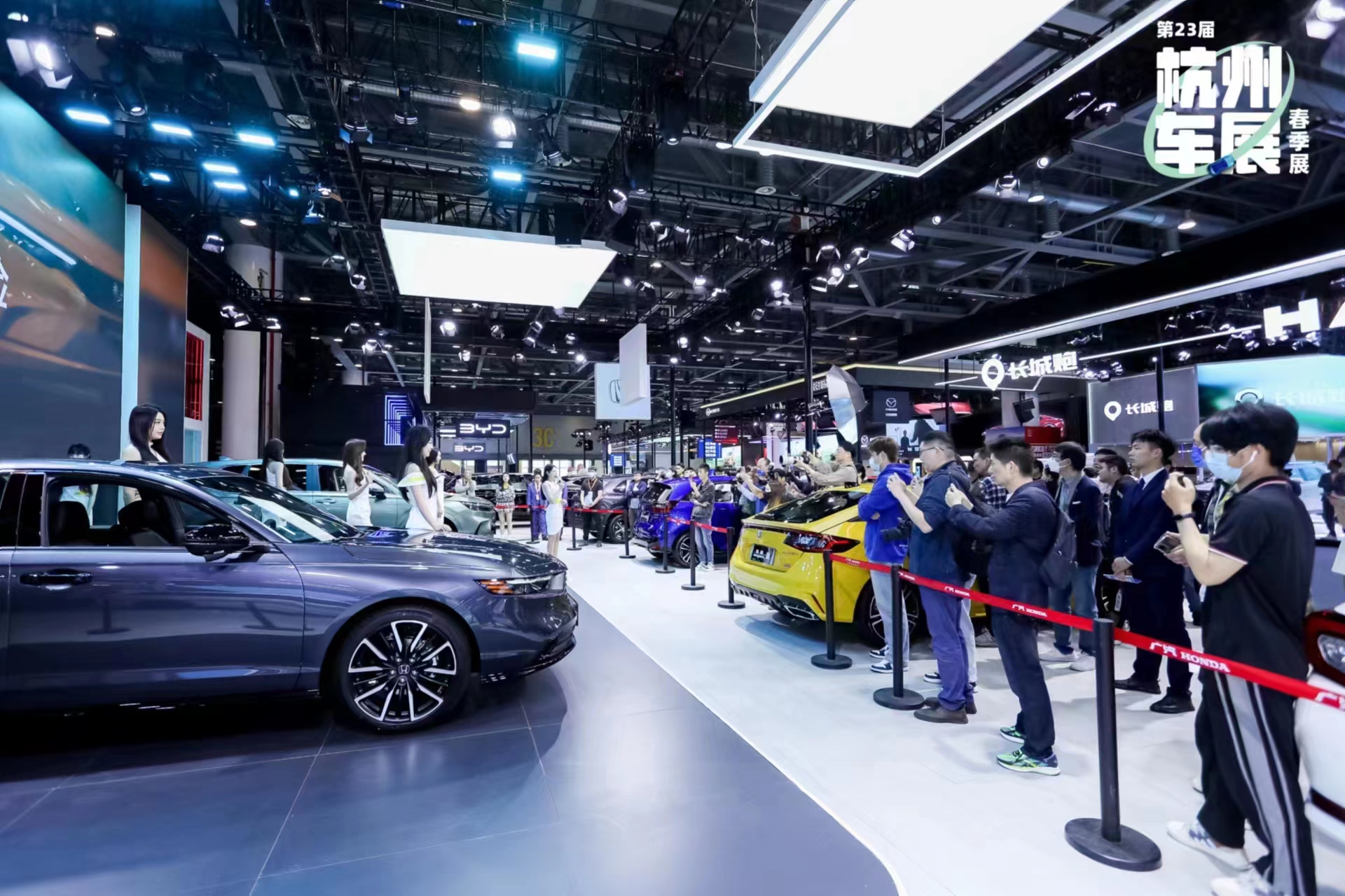 作为厂家主导参展的大型室内车展,杭州车展创办于2000年,是杭州规模最大、档次最高、影响力最强的车展,在拉动汽车销售、刺激消费内需、促进汽车产业升级上发挥着重要作用。此次春季展启用杭州国际博览中心三楼B、C、D三个展厅,吸引近40个在浙江市场占有重要席位的品牌展。BMW、MINI、沃尔沃、凯迪拉克、上汽奥迪等众多高端豪车品牌悉数亮相,点燃豪车狂欢盛宴。市面上热销的自主品牌、合资品牌如上汽大众、东风本田、依维柯、广汽本田、长安马自达、荣威、广汽丰田、长城哈弗、长城炮等也到场亮相。本届车展新能源车参展阵容超五成,不仅传统车企将携新能源车亮相,小鹏、理想、领克、极氪、岚图、哪吒、极狐、等多个热门新能源头部和新势力造车品牌也携旗下新车型、新科技亮相,全面展示汽车工业在电动化、智能化赛道的新成果。本届车展也迎来众多新车首次亮相。如比亚迪海洋网全新车型“海鸥”,以及王朝网“宋Pro DMi 改款”将在车展现场上市发布;高合将在车展现场发布全新豪华科技SUV“HiPhi Y”;上汽大众智能四驱SUV系列车型“新途岳”也将在现场揭幕。