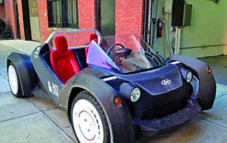 据《纽约每日新闻》报道,世界首款3D打印汽车终成现实,近日这辆汽车走上纽约街头试行,奇特的外观吸引了不少目光。