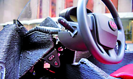 据悉,这辆3D打印汽车“斯特拉迪”只有两个座位,全车只有40个零件,全身是碳纤维及塑料,制作周期为44个小时,并且最高时速可以达到80公里每小时。